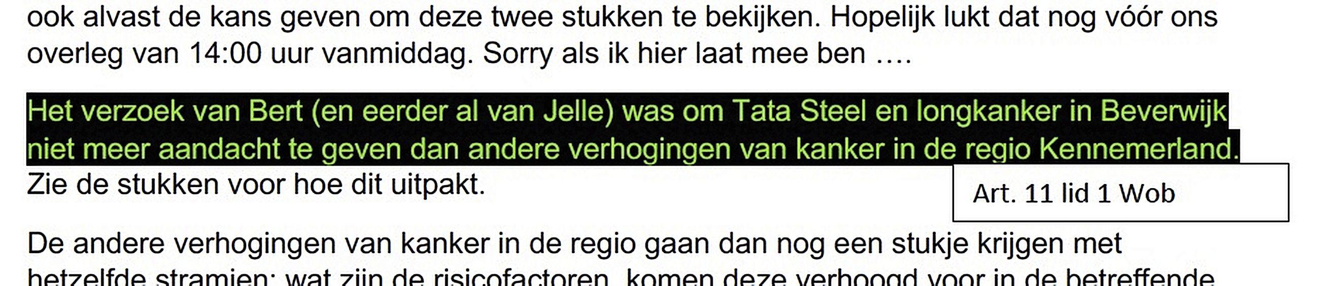Tata Steel, de grootste bron van luchtvervuiling in de IJmond, mocht in een GGD-rapport niet genoemd worden als mogelijke oorzaak van de longkankerplaag in Beverwijk. De GGD-directeur had dit verboden.